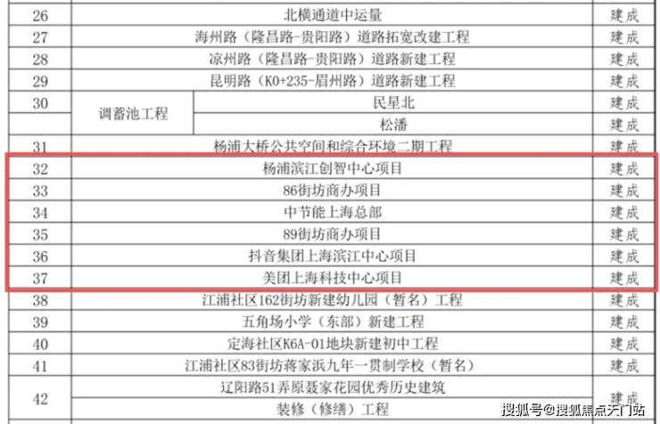 这份来自杨浦区官方公示的项目清单,清晰标注了从“新开工”“在建”到“建成”的全周期进度。其中,抖音、美团、滨江创智中心的全面建成,将杨浦滨江的发展确定性,从蓝图实实在在落地为实景。