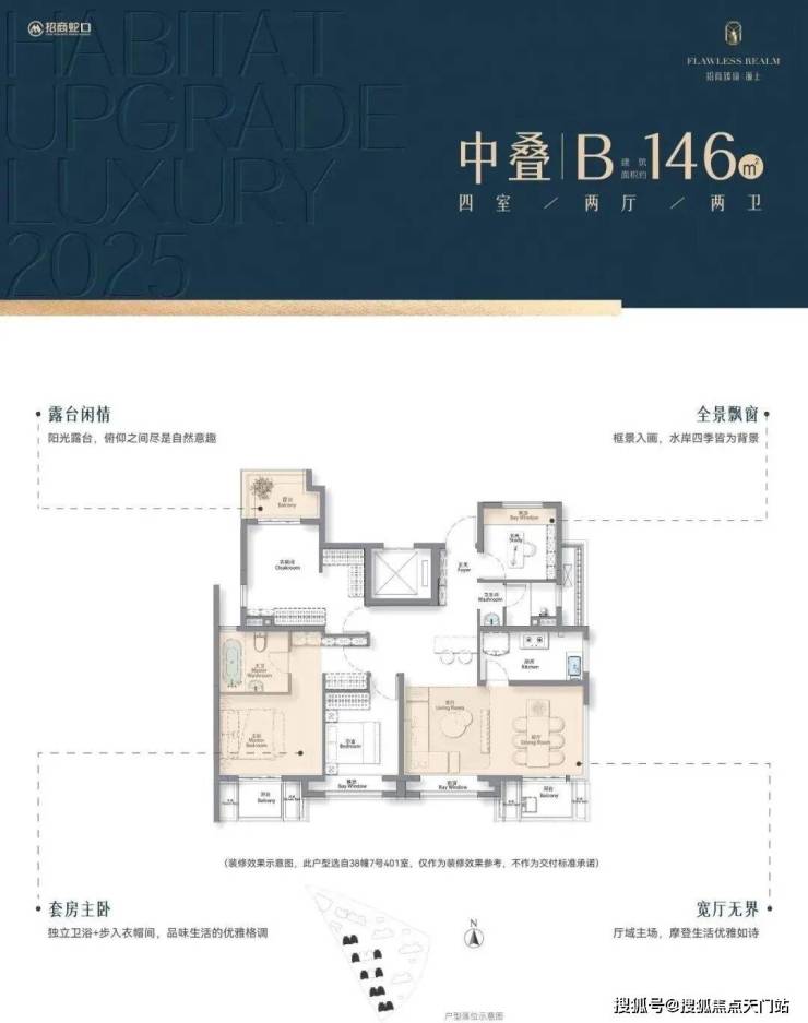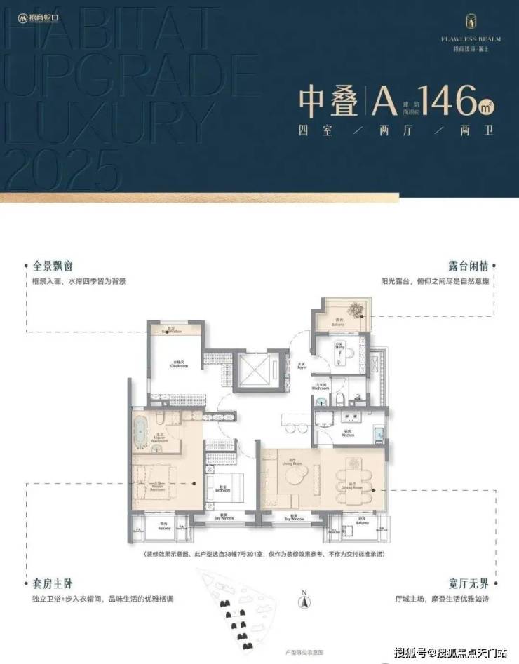√中叠约146㎡四房大平层 空中花园峯范场餐厨客书房无界贯通,形成超级家庭交互场域南向四开间引光入室,全景飘窗框画水岸四季套房主卧,舒享自在的私人场域