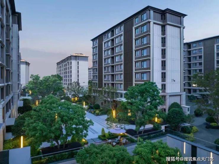 景观上,规划“一环、七园、三巷”的景观布局,打造雅奢酒店式的入户大堂+隐逸摩登都会的园林意境,并参考江南民居“四水归堂”合围而成的庭院,勾勒出动人的中国传统山水画卷。
