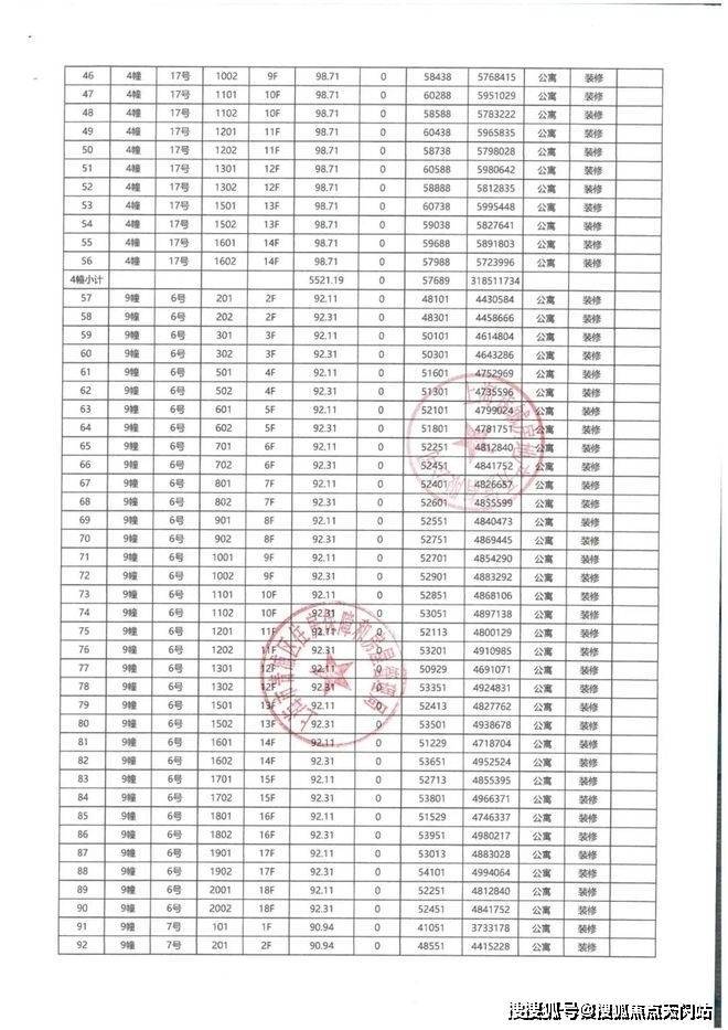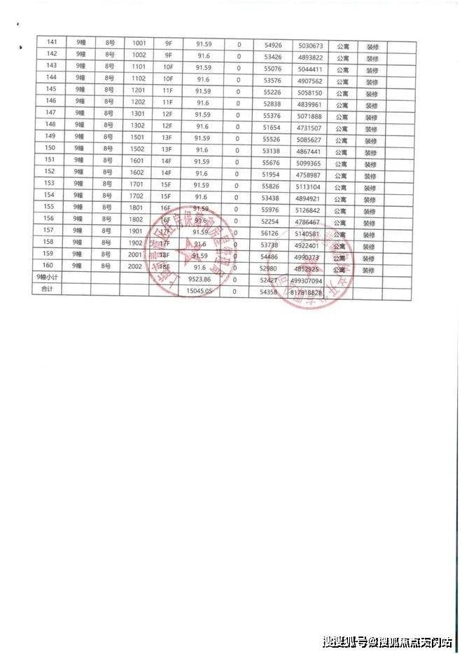 一房一价表如下