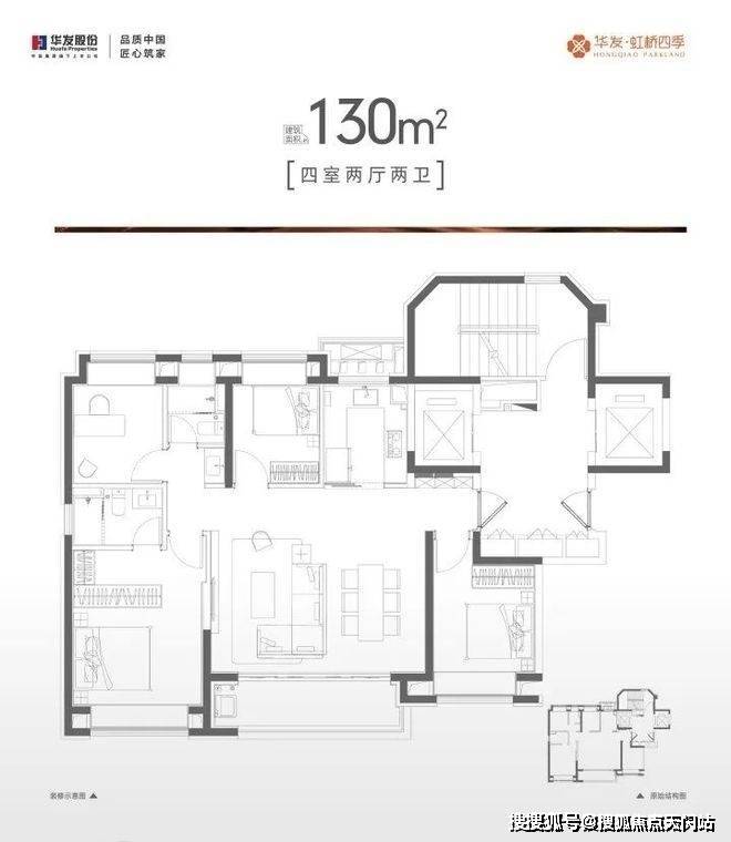 130㎡的四房户型,非常适合 改善家庭置业。
