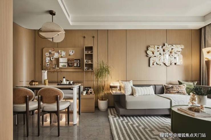 餐厅区域则可以 轻松容纳四人位以上的餐桌,不显拥挤。