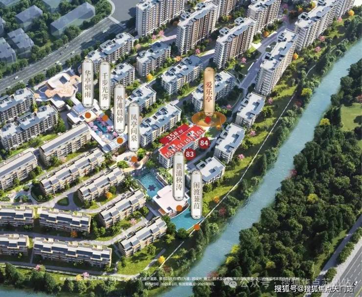 ·19#园心寰景楼座:12层低密小高层,双单元布局,首层增设架空泛会所,坐落两轴双环八景五园之心,内环景观步道三面环绕,南邻“方外游”,北接“碧梧轩”。