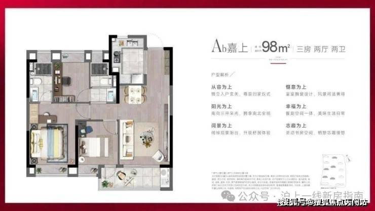 产品方面,项目 主推建面约88-98㎡精装3房, 功能性和品质感兼具。