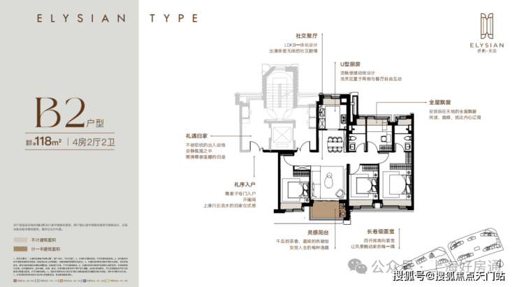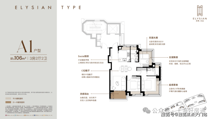 每个户型至少6个飘窗,边套更是约270°转角瞰景。