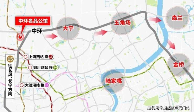 线路基本沿中环区域铺设,途径浦西的智创城板块、大宁、五角场副中心和浦东黄金中环带,据悉可与21条轨交换乘。