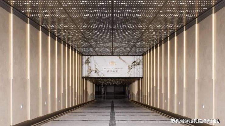 泛会所 空间打造了丰富 社交功能空间 ,更匹配高净值业主的私享需求, 米色大理石 背景墙体现高级质感,镂空屏风透出社区景观的绿意盎然。