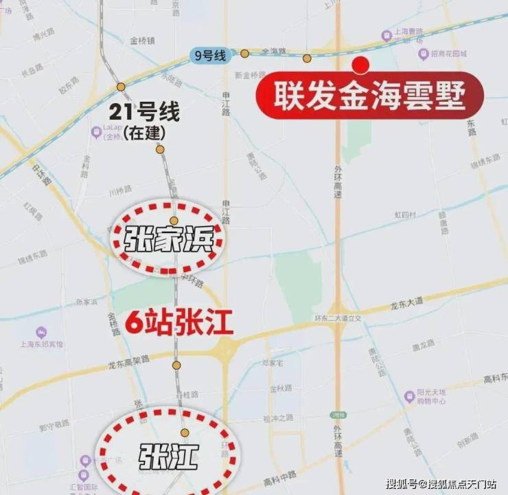 未来21号线开通后,从距离项目最近的金海路出发,4站张家浜、6站张江。