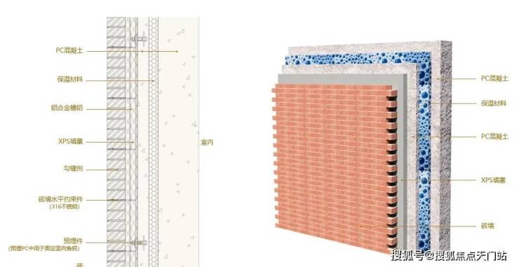 外墙PC板夹芯保温做法示意图