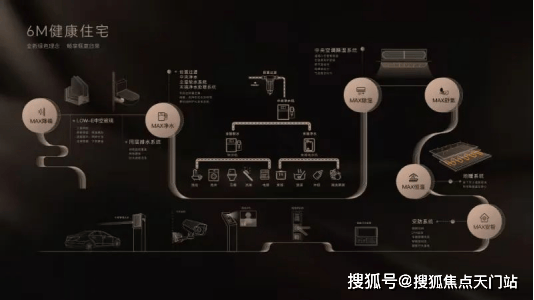 全屋配置6M健康智能住宅系统。这个智能系统系统涵盖降噪、净水、除湿、恒温、安智等多方面:
