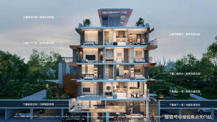 上叠,独立花园入户 +L型露台+顶层花园层+负一层收纳层,超越上海10年+的设计。