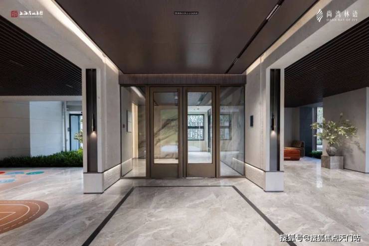 进入南入户大堂,能感受到具有仪式感的现代轻奢设计,灰色大面铝板搭配金色格栅,每一次入户都能体验到无比尊崇的感觉。内部墙面做了大面积岩板,以及具有设计感的吊顶,更贴心地配备了空调,营造舒适的环境。
