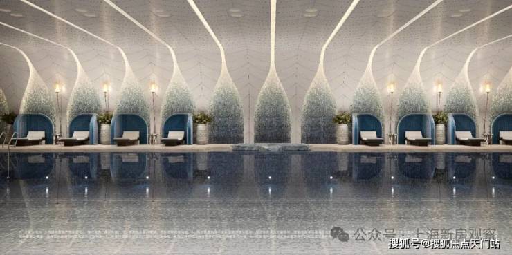 从示范区的打造上来看,保利打造了度假感氛围!采用了国际度假酒店的打造手法,从门头、 具有海蓝色的水景海岛感的花园植物丰富艺术品的植入 ,以及非常亮眼的 上海首个浮雕水景艺术卡座 ,营造轻松、惬意的氛围,像这样的松弛场景在项目中数不胜数,给到客户强烈的度假感和松弛感。