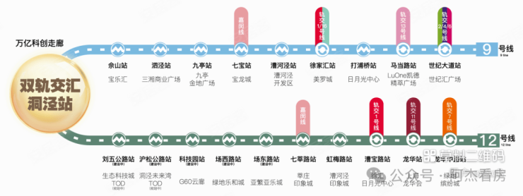 1、距9号线洞泾站直线距离约500米,12号线(在建中)西延伸线洞泾站位于9号线洞泾站旁,直线距离约600米,双轨交汇,帷幄交通大境。2、项目西侧嘉松公路,向北可到达佘山、欢乐谷、山姆会员店、青浦奥莱等,向南可到达松江第一人民医院、松江区政府、松江大学城等。3、项目北侧沈砖公路会设置上下匝道口,未来可快速直达虹桥机场及上海市中心。4、从项目出发,可快捷转到G50、G60高速,规划中的沪松快速路,北接漕宝路—嘉闵高架路立交,南至申嘉湖高速公路(S32),自驾出行,畅达无阻。
