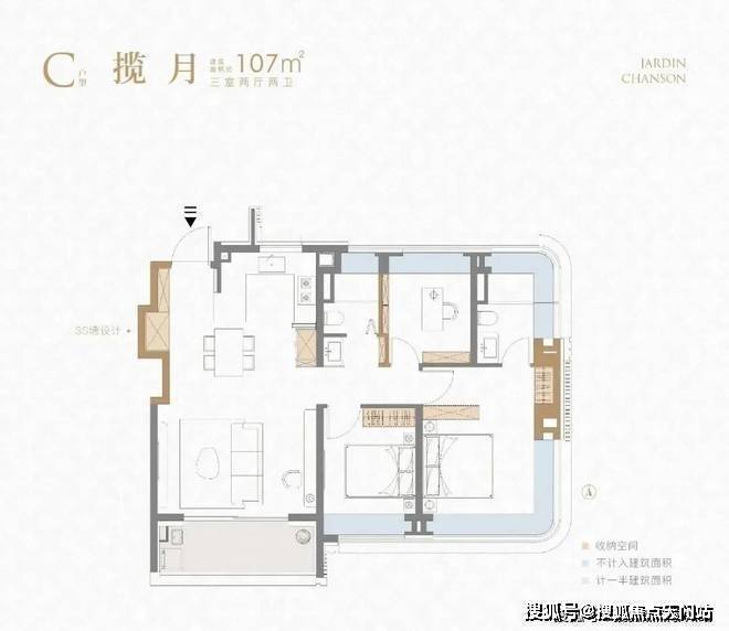 建面约107㎡的3房, 客厅的面宽被拉长到了 约4.7米;3S墙的设计,极大的扩容了家的储物角落; 主卧、主卫双270°全景飘窗的设计。 象屿天宸雅颂售楼处电话:400-118-3159