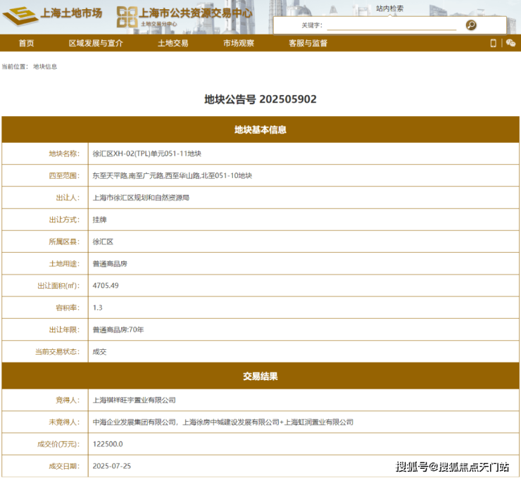 日前,祺祥旺宇的企业以总价122500万拿下徐汇区XH-02(TPL)单元051-11地块,容积率仅1.3,限高15米,楼板价超20万/㎡!