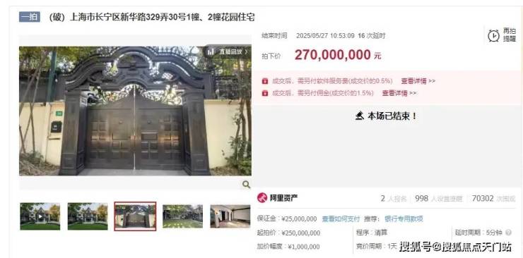随后,上海市区又1栋百年老洋房将拍卖,起拍价1.5亿,起拍单价超过43万/㎡,土地面积848.75㎡。