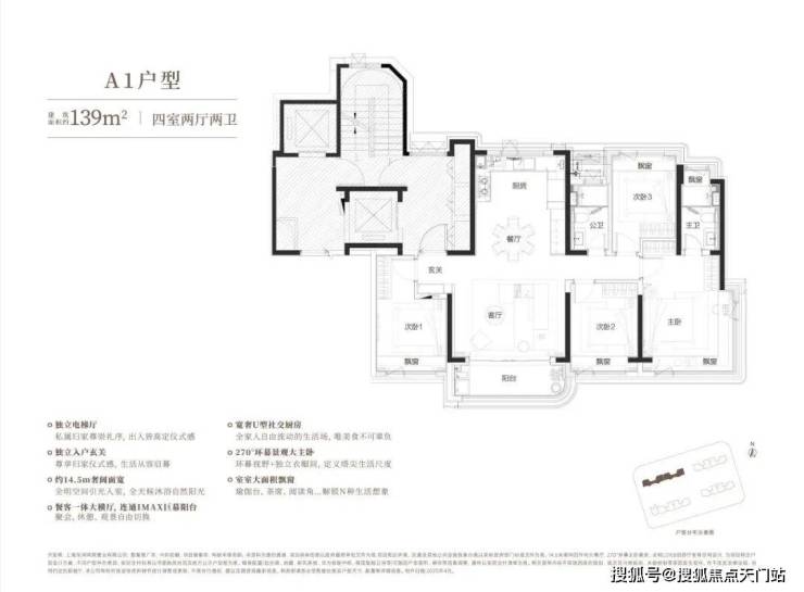 建面约139㎡四房户型,更是形成"阳光平权"的居住体验。