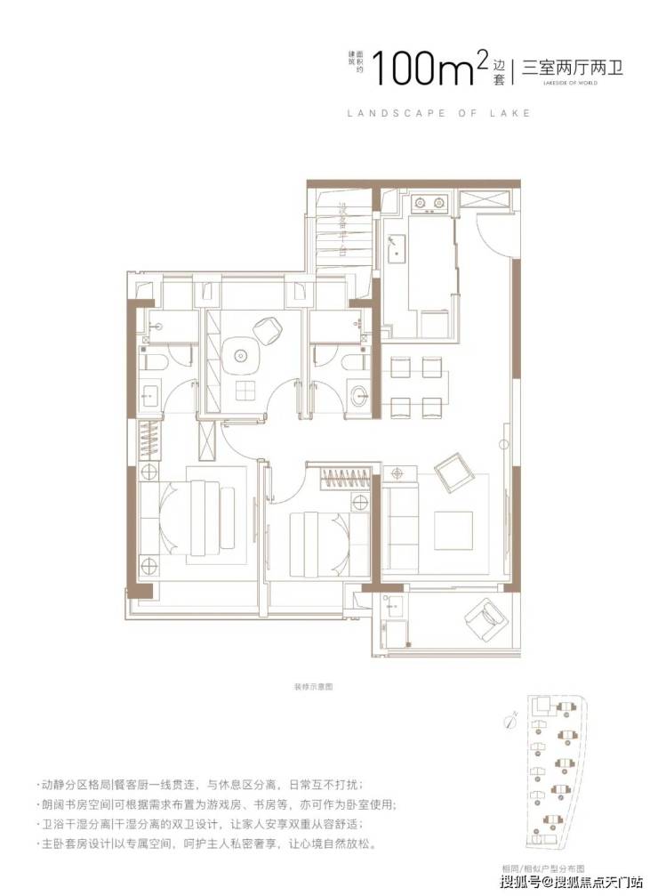 该户型能满足业主从二人世界到三口之家,再到二胎家庭的全生命周期需求。