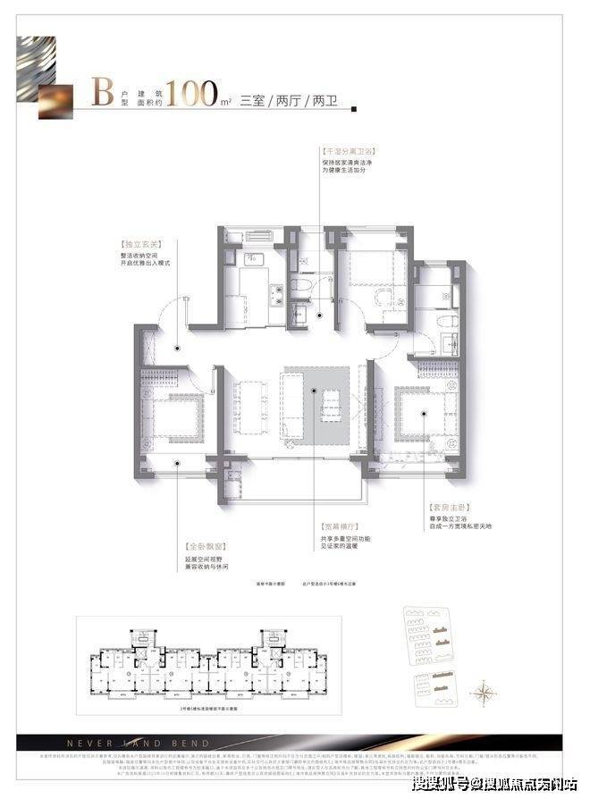 此外,干湿分离卫浴设计+南向套房主卧+全卧飘窗设计,生活舒适度拉满。