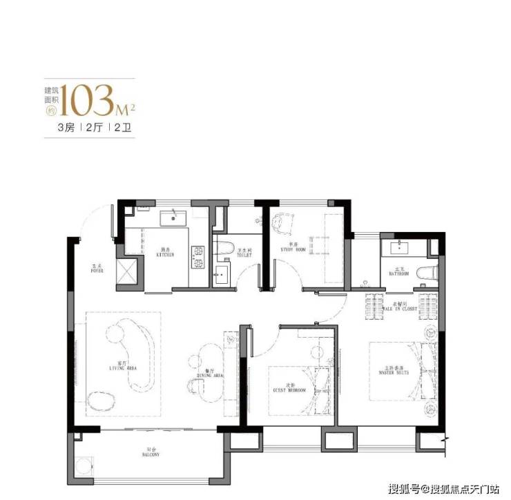 产品:103㎡、107㎡的三房两厅两卫及123㎡、129㎡的四房两厅两卫