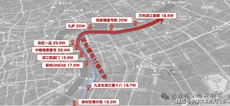 第一代滨江豪宅位于黄浦滨江之上,从中山南路-中山东二路-中山东一路,一众豪宅云集:外滩源、黄浦湾、新梓园,早已售出20万+,乃至未来预计30w的高价。