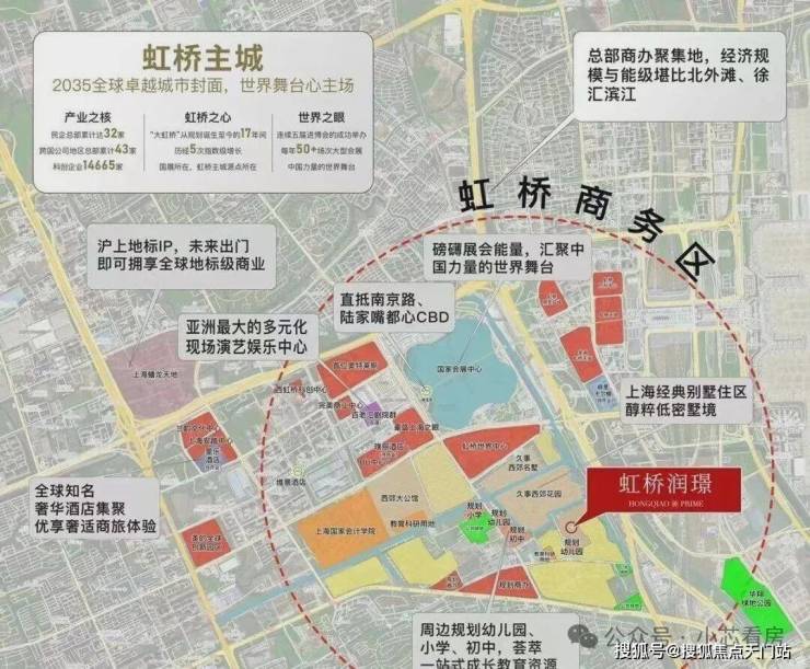 论地段:大虹桥是各家必争之地;而 项目左手国展、虹桥商务区,本就是大虹桥价值第一梯度, 右手更连接闵行古美、七宝等高阶板块。