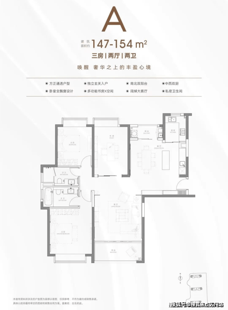建面约133-154㎡平层单价约8.8万/㎡起