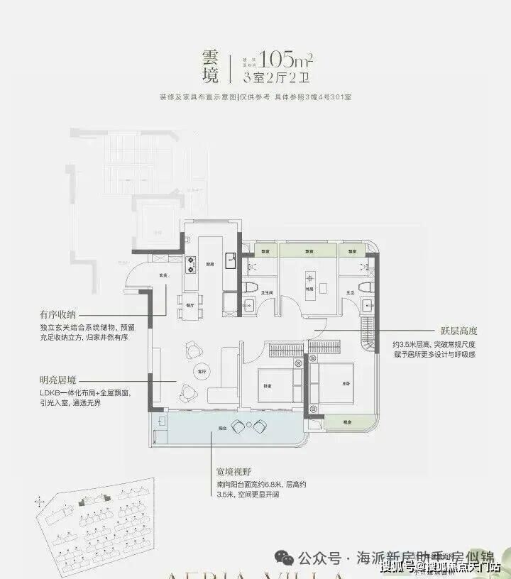 约9.8米南向面宽,配以超大尺度跑道式阳台,让室内外交融共生。