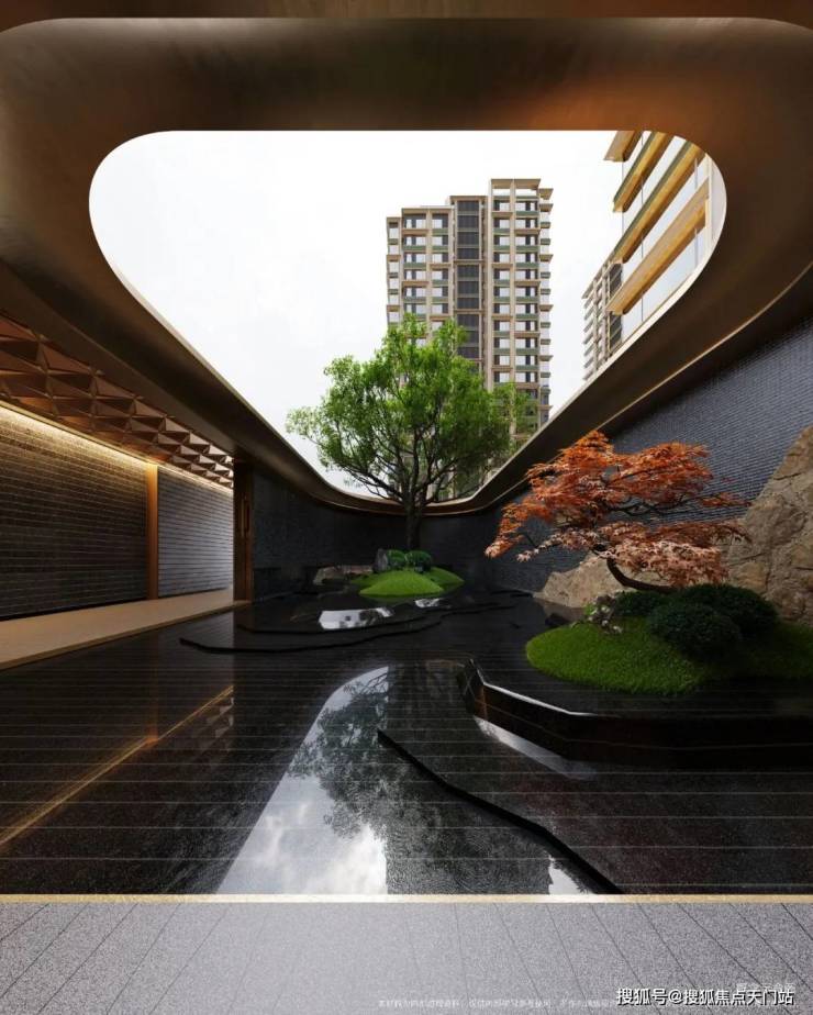 健身房、内外双泳池(其中一个为恒温泳池)、私宴厅、艺术沙龙、茶室、私密会客空间、儿童乐园等高端配套。且通过下沉庭院引入自然光与景观,消弭了传统地下空间的压抑感,营造出明亮、艺术、充满生机的氛围。