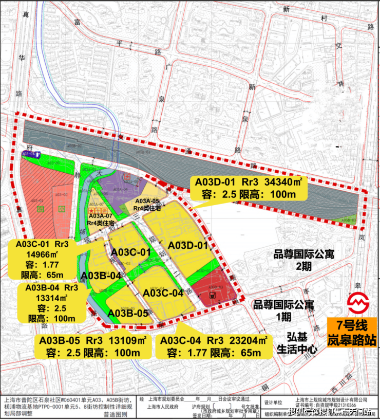 2、TOD规划。由于地块北侧是上海西站的铁路,另外还有20号线一期西段广泉路站(暂命名,在建中),因此这次调整要求重点落实《上海市轨道交通20号线(金昌路站一上海马戏城站)选线专项规划》和车辆基地车场深化方案,并协调周边地块发展。