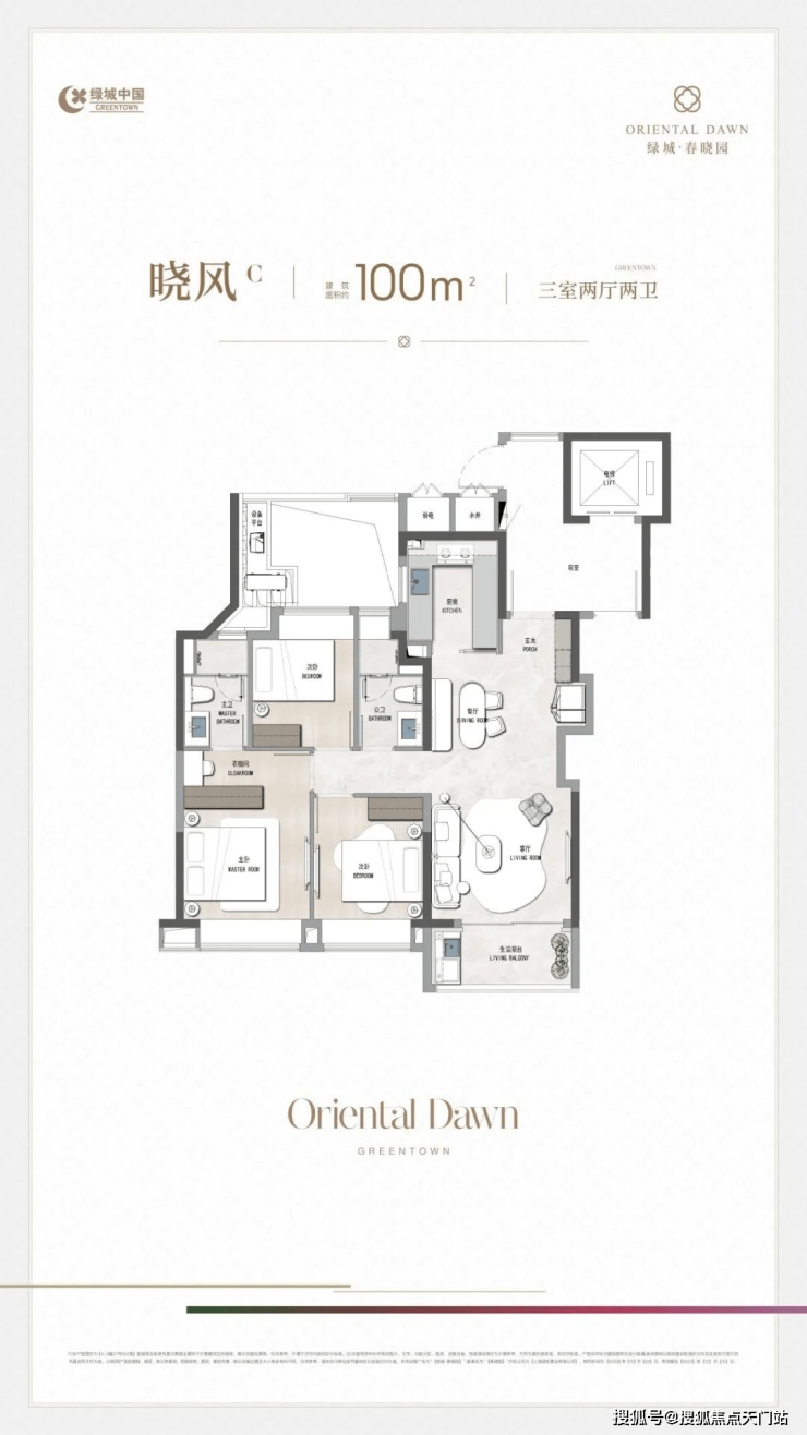 「晓风C丨 100㎡ 3房2厅2卫」