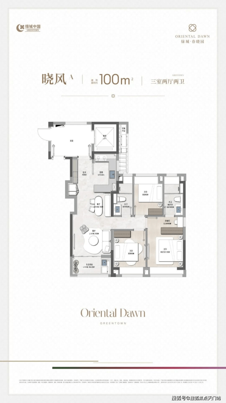 「晓风D丨 100㎡ 3房2厅2卫」