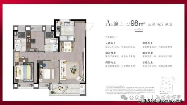 产品方面,项目 主推建面约88-98㎡精装3房, 功能性和品质感兼具。