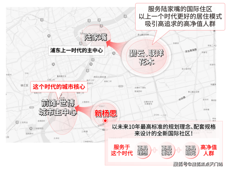 以新杨思为中心,串联起了包括陆家嘴、新天地、前滩、张江、碧云以及浦西大宁、古北、真如等众多城市核心节点。