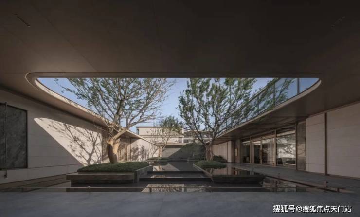 架空层位于中心庭院与景观组团之间,通过合理的空间布局,使得前后两个花园自然地连接成一个整体的大空间。