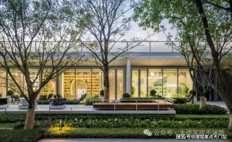 开敞式休闲景观区,则以“⽆界⾃然”为线索,临景互动区设置阶梯式观景台,让阳光清风、自然光然,俯拾皆是。