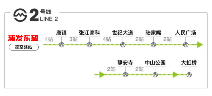 浦发东望距离2号线凌空路站直线约700米,步行可达。是2号线目前距离轨交更近的约500万级地铁盘。