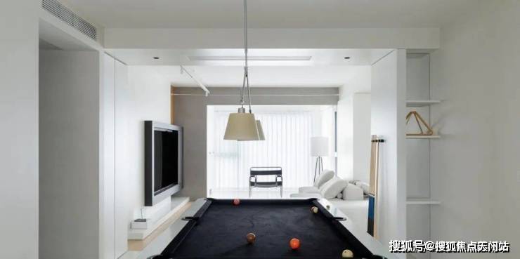 厨房操作平台的横向延展催生出社交属性的介入,使空间在功能置换中获得新的定义。传统餐饮概念在此被解构,通过台球桌的跨界演绎,将休闲与餐厨的日常起居相互渗透,注入个性化的趣味体验。