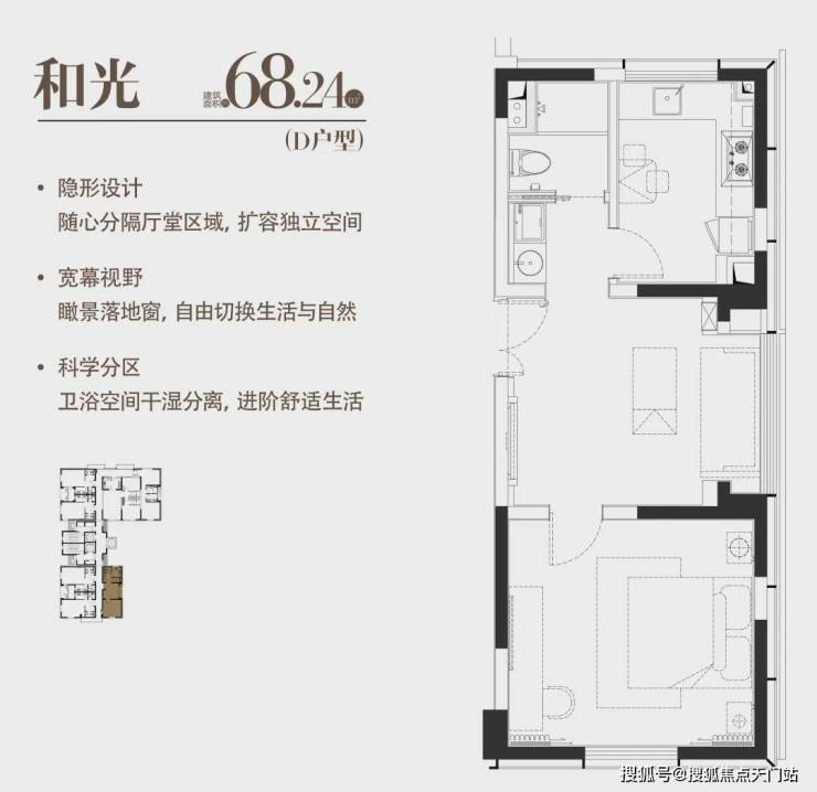 建面约68.24m²|一室一厅一厨一卫