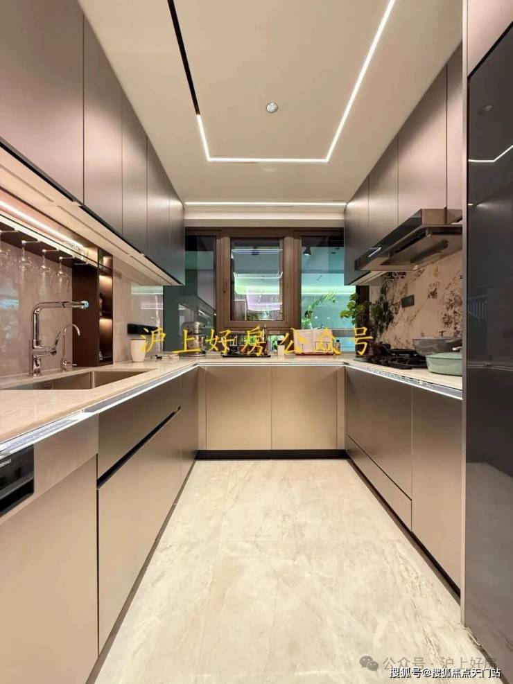比如说餐边柜+操作台+洗手台一体化设置,让这个空间不再单独的满足于简单的吃饭、客厅休憩。
