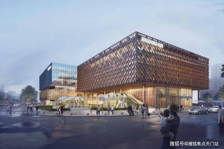 且商业街区质感极高,立面用的是和紫薇之星相同的材质,同时预留了外摆,将社交元素融入到商业底盘中。