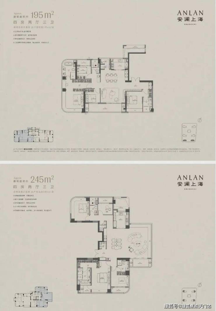 建面约195㎡户型 总价2700-3400万 单价13.8-17.5万/㎡
