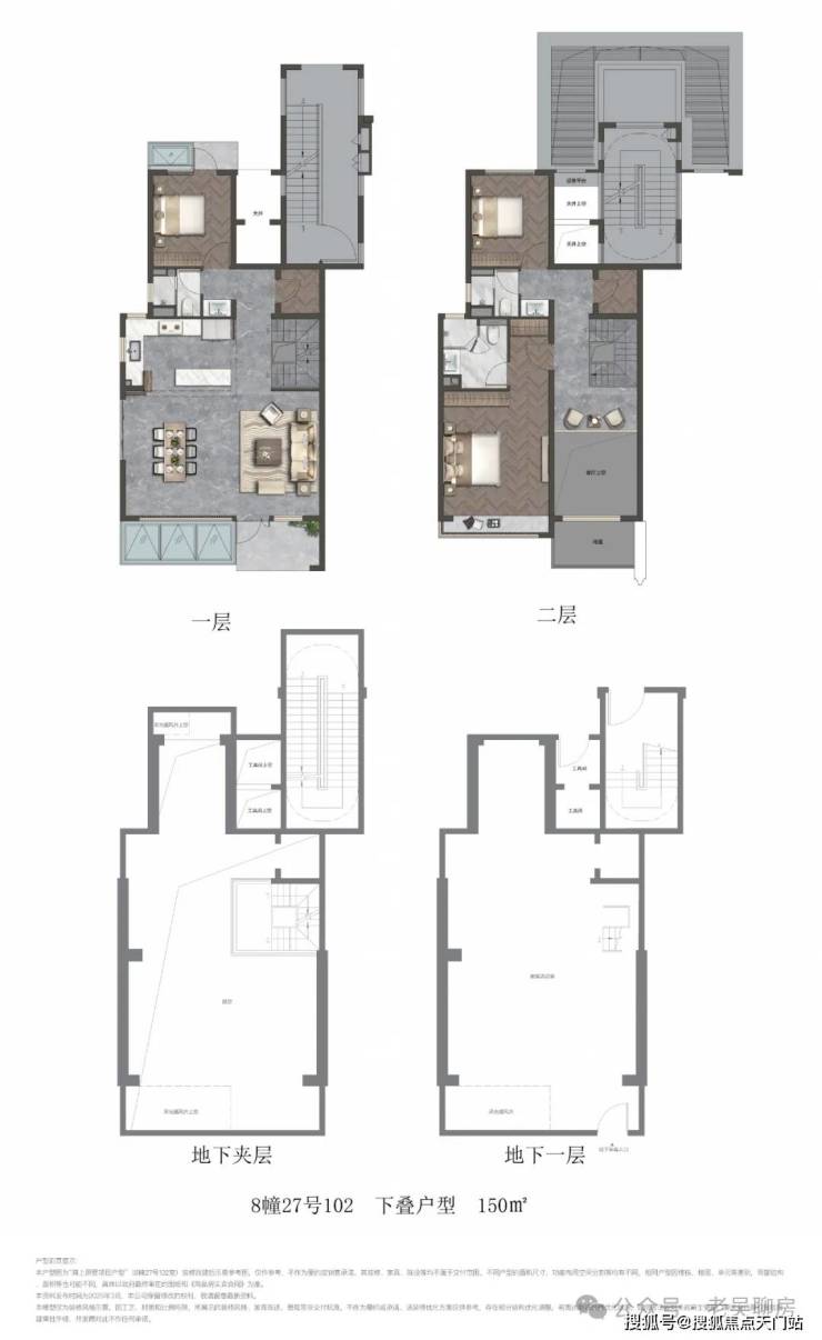 项目叠墅包含 建面约141㎡上叠和建面约150㎡下叠