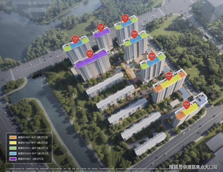 根据方案,项目拟建8栋16-17层高层住宅(含1栋17层保障房),以及5栋6层住宅,共计686户。小区人车分流;车位比约1:1.8,社区内部有水景、下沉式庭院。