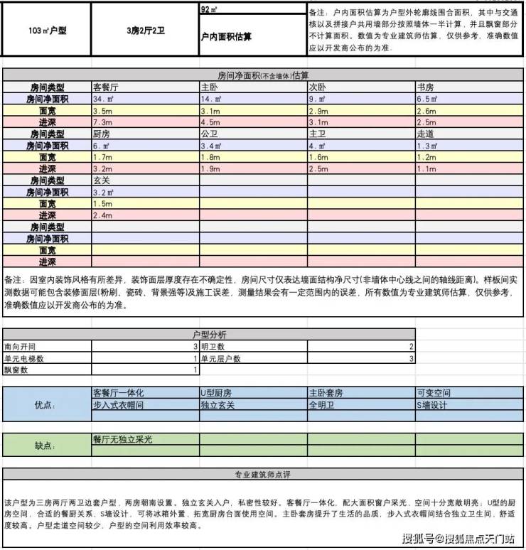 建面约103方A户型:
