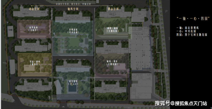 设计理念:围绕“一轴·一心·四园”的景观设计理念,以中央花园和健康静谧的组团花园,通过现代主义建筑风格演绎,呈现充满运动活力和健康生活的公园式品质社区。