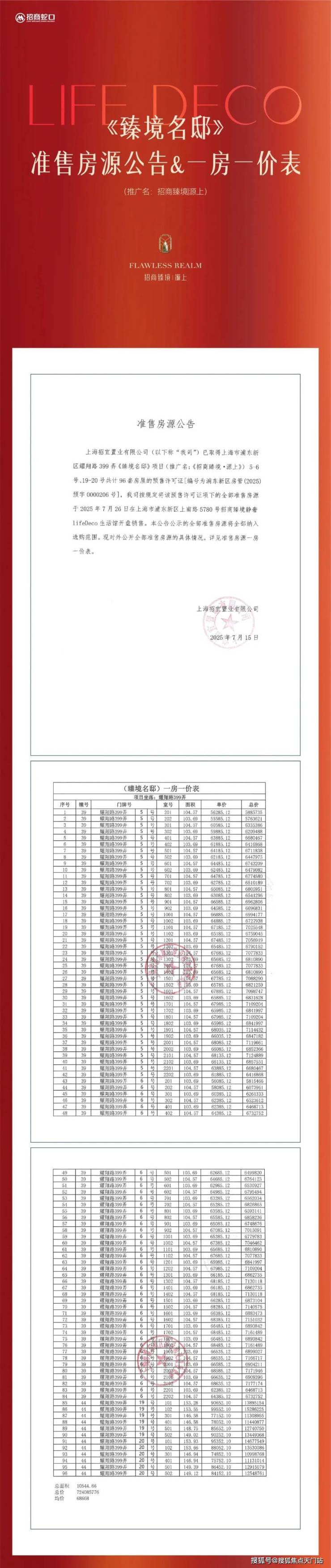 好消息,浦东三林 总价581万起 三阳台王炸产品【招商臻境】加推建面约95-150㎡公寓&叠墅!均价69657元/㎡!一房一价首发!