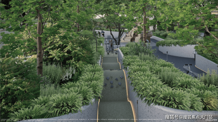 双下沉式庭院、中央会客花园、儿童活动乐园以及带有休闲舒适卡座、定制mini空间的谧静宅间花园等设计,错落有致,赏心悦目。