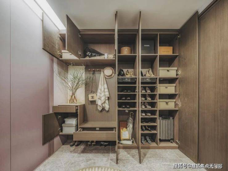 入户有独立玄关,出入更具仪式感的同时也增加了收纳功能。